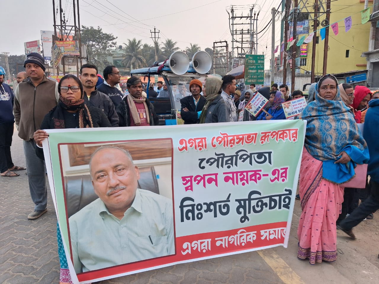 এগরার রূপকার চেয়ারম্যান স্বপন নায়কের নিঃশর্ত মুক্তির দাবিতে রাজপথে নাগরিক সমাজ :শহরজুড়ে তীব্র প্রতিবাদ।