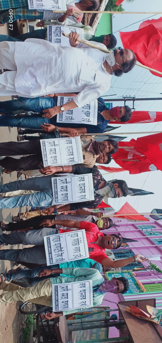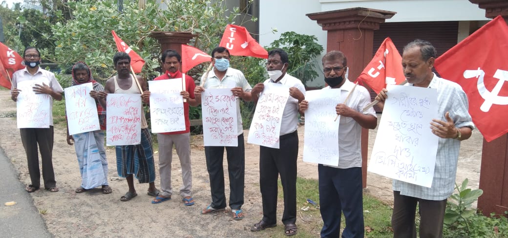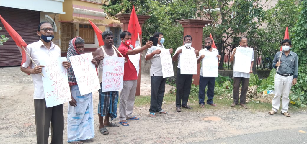 দৈনিক আবেশভূমি ডেস্ক :এগরা কাঁথি পূর্ব মেদিনীপুর: আজ ৯ই জুন মঙ্গলবার করোনা ও অামফান মোকাবিলায় কেন্দ্র ও রাজ্য সরকারের ব্যর্থতা,বিজেপি নেতা তথা কেন্দ্রীয় স্বরাষ্ট্র মন্ত্রী অমিত শাহের ভারচুয়াল জনসভার নামে করোনা মহামারী ও অামফান বিপর্যয়ের মধ্যে বিহার ও পশ্চিমবঙ্গে ভোট রাজনীতির প্রতিবাদ সহ জনস্বার্থ বিরোধী নীতির বিরুদ্ধে কাঁথি ও এগরা মহকুমা সহ জেলা ও রাজ্যজুড়ে বিক্ষোভ কর্মসূচী রূপায়িত হয়। সিপিঅাই এম,কাঁথি এরিয়া কমিটির উদ্যোগে কাঁথি শহরে জুনপুট রাস্তার মোড়ে বিক্ষোভ কর্মসূচীতে নেতৃত্ব দেন সিপিঅাইএম নেতা হরপ্রসাদ ত্রিপাঠী, মামুদ হোসেন, কানাই মুখার্জী, সলিল বরণ মান্না, কৃষ্ণেন্দু বারিক, সৌম্যজিত দাস,তন্ময় অাদক,সেক সামসুদ্দিন,সেক সাত্তার, মধুসূদন জানা, বিদ্যুৎ দে প্রমুখ। দেশপ্রাণ ব্লকের ফুলেশ্বরে এই কর্মসূচিতে নেতৃত্ব দেন সিপিঅাইএম নেতা মামুদ হোসেন, সুতনু মাইতি, সেক সফিউল অালি, প্রবীর বেরা, হোসেন অালি প্রমুখ। মারিশদা এরিয়া কমিটির ডাকে কর্মসূচিতে নেতৃত্ব দেন কালীপদ শীট, হিমাংশু পণ্ডা, ঝাড়েশ্বর বেরা, খাজা অাবুল অালি, স্বপন খাঁড়া,প্রতাপ দাস,অনন্ত পণ্ডা,রাজনারায়ণ দাস,অশোক পণ্ডা প্রমুখ। নেতৃত্বগণ বলেন গ্রাম-শহরে প্রকল্প চাই,কর্মহীনের কাজ চাই,লক-অানলকে দুই সরকারের অপরিণামদর্শীতার প্রতিবাদ সহ গরীবের অ্যাকাউন্টে টাকা চাই, গরীবের ক্ষুধা মেটাও,ভাষণ নয়-রেশন চাই,দুই সরকারের দিশা নাই, মানুষ বেঘোরে মরছে তাই প্রভৃতি দাবী সমূহের ভিত্তিতে অাজকের কর্মসূচি রূপায়িত হয়।খেজুরীর হেঁড়িয়া চৌরাস্তায় সি,পি,আই,(এম) র বিক্ষোভ মিছিল ও অবস্থান বেলা ১১টা থেকে ১২টা পয্যর্ন্ত হয়।নেতৃত্বে রাজ্য কমিটির সদস্য হিমাংশু দাস, গোকুল ঘোড়াই,বিশ্বজিত দাস, সমীরেন্দ্র কলা,সেক মুস্তক,গৌতম প্রধান,আশীষ দেবনাথ,সেক জাকির আহমেদ প্রমুখ।