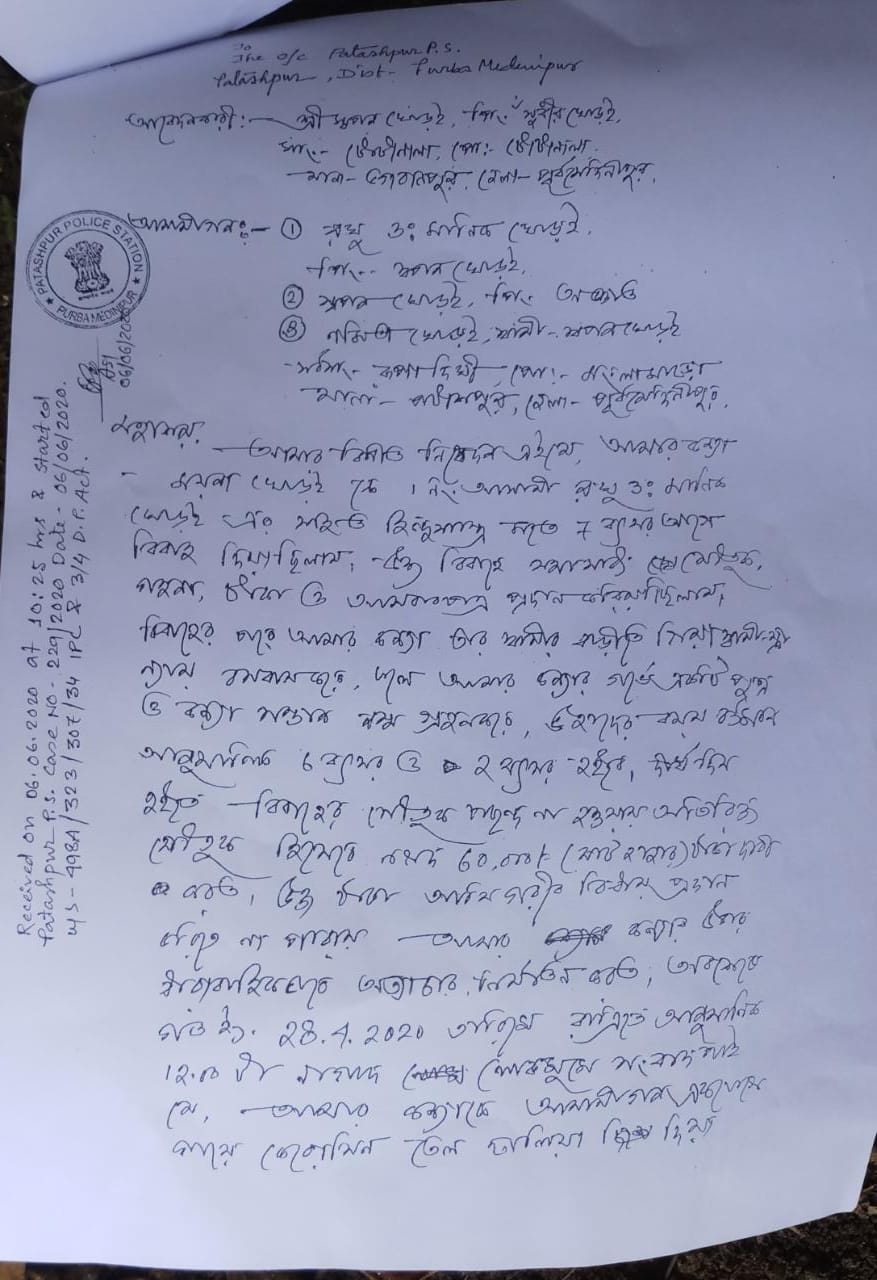 এই ঘটনার পর ময়নার বাবা বুধবার পটাশপুর থানায় লিখিত অভিযোগ দায়ের করে।এরপর পুলিশ লিখিত অভিযোগ পেয়ে তদন্ত নেমেছে বলে জানা যাচ্ছে। পুলিশ সূত্রে খবর অভিযুক্ত এলাকার বাইরে ।