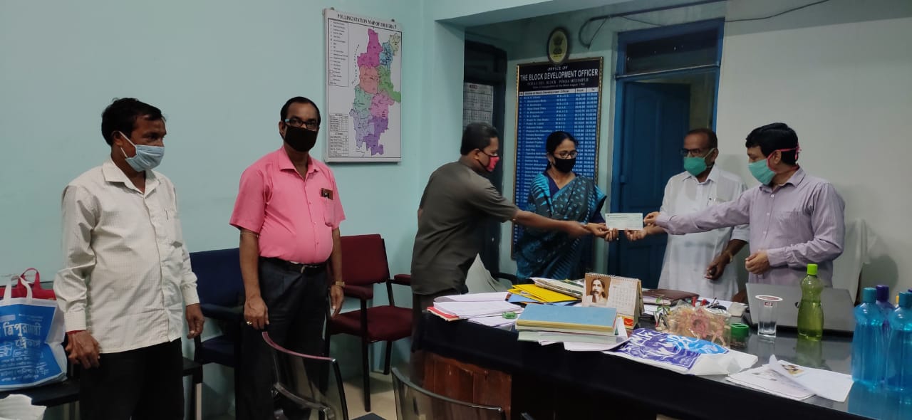 গৌরীশংকর মহাপাত্র :এগরা কাঁথি:পূর্ব মেদিনীপুর:১৫ই জুন সোমবার বালিগেড়িয়া মদনমোহন আদর্শ বিদ্যাপীঠের শিক্ষক শিক্ষিকা শিক্ষাকর্মী এবং পরিচালন কমিটির তরফ থেকে ৩০ হাজার টাকা মুখ্যমন্ত্রীর ত্রাণ তহবিলে দান। বিদ্যলয়ের প্রধান শিক্ষক অম্বিকেশ মান্ন, পরিচালন কমিটির সভাপতি তথা পঞ্চায়েত সমিতির স্বাস্থ্য কর্মাধক্ষ্য রেখা প্রধান পঞ্চায়েত সমিতির সভাপতি অমিয় রাজ এর উপস্থিতিতে এগরা-১ বি ডি ও বংশীধর ওঝার হাতে ৩০হাজার টাকার চেক তুলে দেন। উপস্থিত ছিলেন বিদ্যালয়ের সহশিক্ষক কৃষ্ণপদ চক্রবতী,পরিচালন কমিটির সদস্য বঙ্কিম চন্দ্র জানা, অধীর সাউ, ইন্দু ভূষণ প্রধান প্রমুখ। বিদ্যালয়ের প্রধান শিক্ষক জানান মুখ্যমন্ত্রীর ত্রাণ তহবিল গঠন করে মহামারী করোনা প্রতিরোধে সবার সহযোগিতা চেয়েছেন,মুখ্যমন্ত্রীর সেই আহবানে সাড়া দিয়ে বিদ্যালয়ের শিক্ষকও শিক্ষাকর্মীগণ মুখ্যমন্ত্রীর পাশে থেকে সহযোগিতা করতে এমন উদ্যোগ।