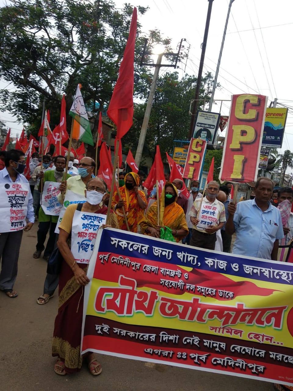 ত্রাণসহ পুনর্বাসন ও পুনর্গঠনের কাজে দলবাজি চলবে না, সুন্দরবন এলাকায় স্থায়ীভাবে কংক্রিটের নদীবাঁধ তৈরি করতে হবে, স্কুলকলেজে চিরায়ত পড়াশোনার পদ্ধতির বিকল্প হিসেবে শুধুমাত্র ডিজিটাল মাধ্যম চাপিয়ে দেওয়া চলবে না প্রভৃতি দাবীগুলির সমর্থনে বামশরিক দল ও সহযোগী দলগুলির উদ্যোগে এগরা মহকুমা শহরে মিছিল ও পথসভা হয়। নেতৃত্বদেন সি আই টি ইউর জেলা সম্পাদক সুব্রত পন্ডা, সমীর সামন্ত, ভূবন খাটুয়া, কৃষ্ণপদ মাইতি, অমিয় দাস, বন বিহারী পাত্র এন সি পি দলের সুকুমার রায়, তারা পদ রথ, সুজিত সিনহা প্রমুখ।কাঁথিতে সিআই টি ইউর হরপ্রসাদ ত্রিপাঠী, কানাই মুখার্জী, মামুদ হোসেন, প্রনব পন্ডা, সলিল মান্না, কালীপদ শীট, হিমাংশু দাস প্রমুখ।