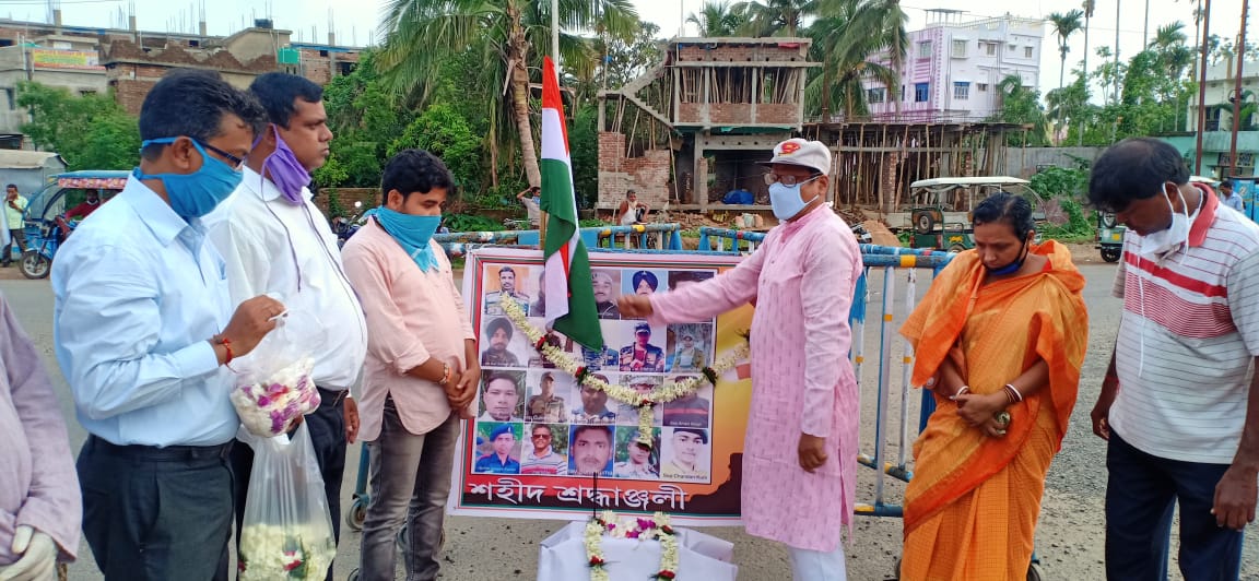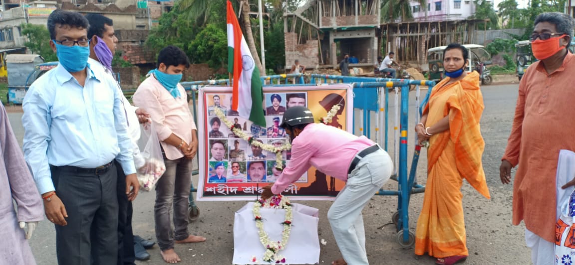 ভারতের বীর সৈনিক ২০জন শহীদের শ্রদ্ধা জ্ঞাপন করে বিজেপি।যেসব সৈনিক দেশমাতৃকার জন্য আত্মবলিদান দিয়েছেন, তাঁদের অমর আত্মার চিরশান্তি কামনা করে শ্রদ্ধাঞ্জলী জ্ঞাপন করা হয়। আজ শুক্রবার কাঁথি নগর বিজেপির পক্ষ থেকে প্রথমে কাঁথির সেন্ট্রাল বাসস্ট্যান্ড থেকে শুরু করে মেচেদা বাইপাস, কাঁথি হাই স্কুল হয়ে পোস্ট অফিস মোড়, সর্বমোট চারটি স্থানে শ্রদ্ধাঞ্জলী জ্ঞাপন করা হয়।