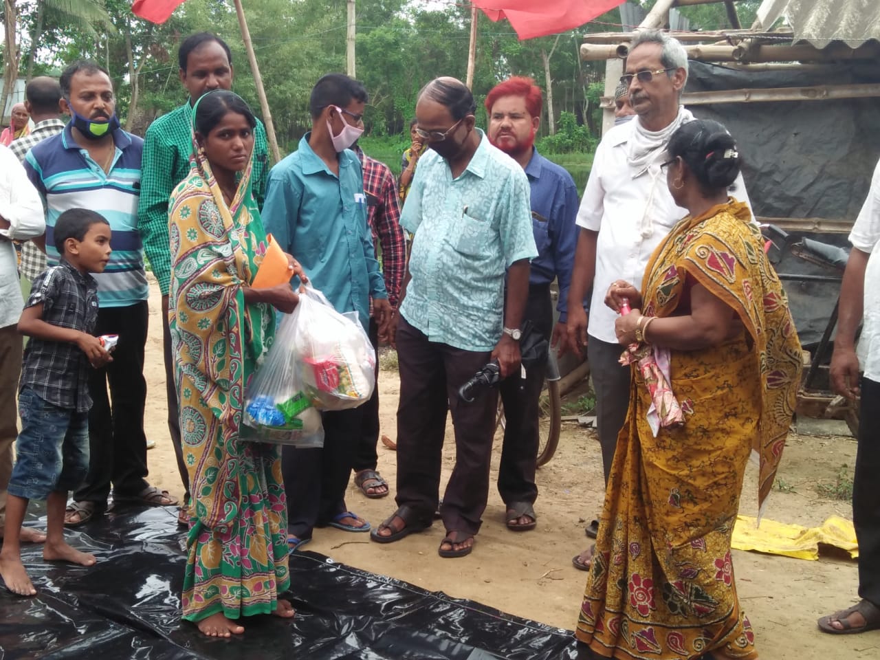 গৌরীশংকর মহাপাত্র :এগরা কাঁথি :পূর্ব মেদিনীপুর। ২০শে জুন শনিবারএগরা -২ এর মঞ্জুশ্রী পঞ্চায়েতের ফারকপাড়ায় সেক সৈজুদ্দিন (২৬) আম্ফান ঝড়ের দিনে পরিবার সহ কুঁড়েঘর থেকে আশ্রয়ের খোঁজে বেরিয়ে ঝড়ে আছাড়ে মারা যায়। বরাত জোরে বেঁচে যায় ৬ বৎসর ও ৬ মাসের ২ টি মেয়েসহ স্ত্রী জাহেরা বিবি(২২)। দূর্ভাগ্য বসত সরকারী তালিকাভূক্ত না হওয়া ত্রানে বঞ্চিত হয় এই পরিবার। সি পি আই (এম) এর দোবাঁধী শাখার কৃষক সভা পাশে দাঁড়িয়ে সাধ্যমত ত্রাণ দেয়।