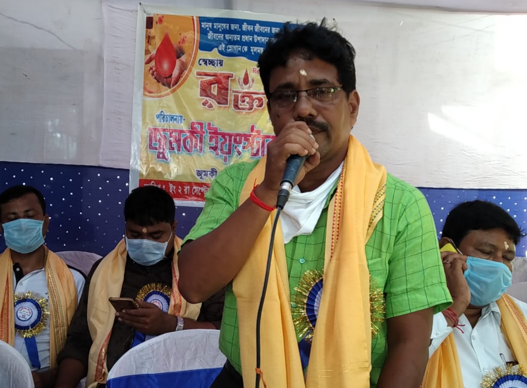 গৌরীশংকর মহাপাত্র : এগরা কাঁথি: পূর্ব মেদিনীপুর। আজ ২ সেপ্টেম্বর বুধবার এগরা -১এর জুমকী পঞ্চায়েতের “জুমকী ইয়ংস্টার” ক্লাব এর ব্যবস্থাপনায় রক্তদান শিবির অনুষ্ঠিত হয়। দেশের প্রয়াত ত্রয়োদশ রাষ্ট্রপতি ভারতরত্ন প্রনব মুখোপাধ্যায়ের প্রতিকৃতিতে শ্রদ্ধা নিবেদন করে ও রক্তদাতাদের হাতে পুষ্পস্তবক তুলে তাদের সম্বর্ধিত করে শিবিরের উদ্বোধন করেন পূর্ব মেদিনীপুর জেলা পরিষদ সদস্য তথা জেলা টেলিটাওয়ার কর্মচারী সংগঠনের সভাপতি উত্তম বারিক। সঙ্গে এগরা -২ পঞ্চায়েত সমিতির সভাপতি দীনেশ প্রধান, জুমকী পঞ্চায়েত প্রধান শিবানী পন্ডিত, এগরা -৩ যুব তৃণমূল নেতৃত্ব রাজকুমার দুয়ারী, সংখ্যালঘু সেলের বাবুল সাহা, মানস সাহু, রাজু সাহু, বিশ্বজিৎ সাহু, শঙ্কু জানা, ভবেশ সাহু, সৌরভ ঘড়াই প্রমুখ। সভায় পৌরোহিত্য করেন জুমকী পঞ্চায়েতের উপপ্রধান উদয় শংকর সর। স্বাগত ভাষণে ক্লাব সভাপতি গৌতম সাউ (পাপু) জানান “মানুষ মানুষের জন্য, জীবন জীবনের জন্য,” এই বোধ কে সামনে রেখে সংস্থা মানুষের সাহায্যের কথা মাথায় রেখে এমন রক্তদান শিবিরের আয়ো