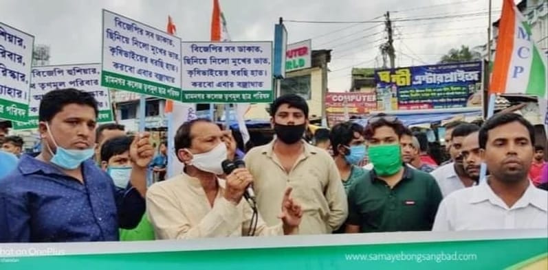গৌরীশংকর মহাপাত্র: এগরা কাঁথি: পূর্ব মেদিনীপুর। কেন্দ্রের কৃষক বিরোধী বিল নিয়ে সংসদে নৈরাজ্য ও কেন্দ্রের বিজেপি সরকারের যুক্তরাষ্ট্র গঠনতন্ত্র হত্যার প্রতিবাদে মুখ্যমন্ত্রী মমতা বন্দ্যোপাধ্যায়ের ঘোষিত কর্মসূচি অনুযায়ী কৃষকদের অধিকার লড়াইয়ের লক্ষ্যে রামনগরে বিক্ষোভ মিছিল ও পথসভা করে তৃণমূল কংগ্রেস। রামনগর কলেজ তৃণমূল ছাত্র পরিষদ এবং বিধায়ক তথা জেলা তৃণমূল কংগ্রেসের কো অর্ডিনেটর অখিল গিরির নেতৃত্বে বুধবার রামনগর বাজার এই বিক্ষোভ মিছিল ও পথসভা অনুষ্ঠিত হয়। ছিলেন রামনগর -১ পঞ্চায়েত