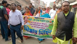 দৈনিক আবেশভূমি ডেস্ক :এগরা কাঁথি :পূর্ব মেদিনীপুর।খেজুরী-১এর বীরবন্দ অঞ্চলের বীরবন্দ বাজারে অালাইচক সহ কয়েকটি এলাকায় বিজেপি মদতপুষ্ট সমাজবিরোধী’দের দৌরাত্ম্য রোধে ও দুষ্কৃতকারী’দের গ্রেফতারের দাবী সহ শান্তিশৃঙ্খলা বজায় রাখার দাবীতে তৃণমূল কংগ্রেসের অাহ্বানে অাজ মহামিছিল বাজার পরিক্রমা ও জনসভা হয়। সভাপতিত্ব করেন খেজুরী-১ তৃণমূল কংগ্রেস সভাপতি