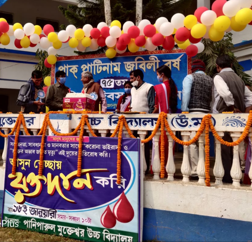 গৌরীশংকর মহাপাত্র: এগরা কাঁথি: পূর্ব মেদিনীপুর। ১৯৪৭ সালের ১৬ ই জানুয়ারী এগরা-২ এ পানিপারুল মুক্তেশ্বর হাইস্কুলের প্রতিষ্ঠা হয়। স্থানীয় প্রিয়নাথ দাসের সভাপতিত্বে মহেশ্বর নন্দ’কে প্রধান শিক্ষকের আসনে বসিয়ে সম্পাদক মধুসূদন জানাসহ কতিপয় বিদ্যোৎসাহী লক্ষীকান্ত রাজ, মহেশ্বর দাস, পার্থসখা মহাপাত্র, উদয় নারায়ণ জানা, পঞ্চানন মন্ডল’দের তৎপরতায় আজ থেকে ৭৫ বছর আগে বিদ্যালয়ের পথ চলা শুরু। দিনটিকে স্মরণীয় করতে বিদ্যালয় কতৃপক্ষ শনিবার রক্তদান শিবিরের আয়োজন করে। করোনা আবহে প্লাটিনাম জুবিলীর কাজ এবৎসর শুরু করা যায়নি, আগামী বছর এই অনুষ্ঠান শুরু হবে বলে জানান বিদ্যালয়ের প্রধান শিক্ষক তথা রক্তদান শিবিরের উদ্বোধক পূর্ব মেদিনীপুর জেলা প্রাথমিক বিদ্যালয় সংসদের সভাপতি তরুণ কুমার মাইতি। বিদ্যালয়ের পতাকা উত্তোলন করে ৭৫ তম প্রতিষ্ঠা দিবস উদযাপন অনুষ্ঠানের সূচনা করেন এগরা -২ পঞ্চায়েত সমিতির সভাপতি বিদ্যালয়ের প্রাক্তনী দীনেশ প্রধান। ছিলেন পানিপারুল পঞ্চায়েত প্রধান রঞ্জিতা প্রধান, বিদ্যালয়ের প্রাক্তন সহ-সভাপতি গৌতম কুমার সাউ, বিদ্যালয়ের শিক্ষক রজত কুমার বেরাসহ শিক্ষক শিক্ষিকাগণ ।এগরা