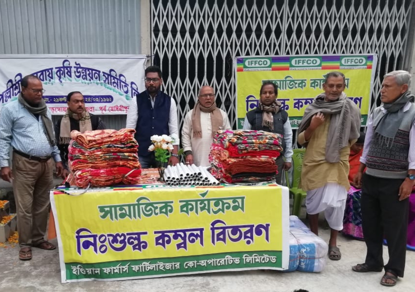 গৌরীশংকর মহাপাত্র: এগরা কাঁথি: পূর্ব মেদিনীপুর:দেশের ৭২ তম সাধারণতন্ত্র দিবসে পটাশপুর-২এর আড়গোয়াল পল্লীশ্রী কৃষি উন্নয়ন সমবায় সমিতি ও IFFCO এগরা ইউনিটের সহযোগিতায় দু:স্থদের শীতবস্ত্র বিতরণ হয় মঙ্গলবার। সকালে সমিতির কার্যালয়ে যথাযথ মর্যাদায় দিনটি পালন শেষে সমিতির ডাইরেক্টর গনের উপস্থিতিতে ১৫০কে শীতবস্ত্র কম্বল তুলে দেওয়া হয়। ছিলেন IFFCO এর জেলা আধিকারিক সুমন দাস, এগরা ইউনিটের চয়ন কেতকী, সমিতির সহ-সভাপতি তথা পঞ্চায়েত সমিতির খাদ্য কর্মাধ্যক্ষ শিবানী নন্দগোস্বামী, ম্যানেজার মিহির কুমার মিশ্র, ডাইরেক্টর দীপক কুমার দাস, পশুপতি সাউ, সুলেখা নায়ক, রজনীকান্ত দাস, গৌরমনি নায়েক প্রমূখ। সভায় পৌরহিত্য করেন সমিতির সভাপতি অরবিন্দ দাস। স্বাগত ভাষণে সাধারণতন্ত্র দিবসের তাৎপর্য তুলে ধরে এমন দিনে দু:স্থদের পাশে থেকে সেবামূলক কাজ করার লক্ষ্যে সংস্থার এমন উদ্যোগ বলে জানান সম্পাদক রৈবত কুমার আচার্য, এমনকি করোনা পরিস্থিতির শিকার মানুষদের পাশে দাঁড়িয়ে সমিতি তার সামর্থমত খাদ্য সামগ্রী বিতরণের পাশাপাশি মুখ্যমন্ত্রীর আহ্বানে সাড়া দিয়ে ত্রাণ তহবিলে আর্থিক সাহায্য তুলে দেওয়ার কথা তুলে ধরেন।শেষে উপস্থিত সকলকে ধন্যবাদ জানান সমিতির বাজার শাখার ম্যানাজার চিত্তরঞ্জন নায়ক।