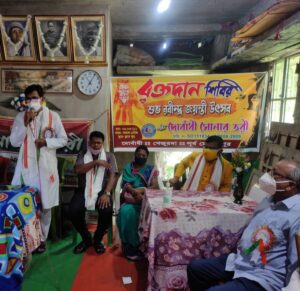 গৌরীশংকর মহাপাত্র: এগরা কাঁথি: পূর্ব মেদিনীপুর। এগরা-২এর মঞ্জুশ্রী পঞ্চায়েতের দোবাঁধি সোনারতরী ক্লাবে বিশ্বকবি রবীন্দ্রনাথের ১৬১ তম জয়ন্তী উদযাপন লক্ষ্যে রক্তদান শিবির অনুষ্ঠিত হয় সোমবার। রক্তদাতা’দের হাতে গোলাপ ও চারাগাছ তুলে দিয়ে শিবিরের উদ্বোধন করেন এগরার নবনির্বাচিত বিধায়ক শিক্ষাবিদ তরুণ কুমার মাইতি। সঙ্গে মঞ্জুশ্রী পঞ্চায়েত প্রধান পূর্ণিমা মাইতি, পঞ্চায়েত সমিতির সভাপতি দীনেশ প্রধান,জেলা পরিষদ সদস্য পার্থ সারথি দাস,সমাজসেবী সন্দীপ পাত্র প্রমুখ। এগরা ব্লাড ব্যাংক ৪০ পুরুষ ও মহিলার রক্ত সংগ্রহ করে। উদ্বোধক ও অতিথিগণ বক্তব্যে করোনা আবহে রক্তের সংকটে থ্যালাসেমিয়া রোগীদের পাশে থাকতে এমন উদ্যোগ প্রসংশার যোগ্য। বিধায়ক আরও বলেন সব কাজ সরকার করে দেবে এমন থারনা মাথায় রেখে বসে থাকা ঠিক না, সুস্থ্য সমাজ গঠনে স্বেচ্ছাসেবী সংগঠন গুলির ও বিশাল ভূমিকা রয়েছে। এমন সংস্থাগুলির কাজকে ধন্যবাদ জানাই ,তাদের শ্রীবৃদ্ধি কামনা করি। তাদের এমন ভালো কাজে পাশে থাকার আশ্বাস দেন। গতকাল রবিবার একই মঞ্চে যথাযথ মর্যাদায় সংস্থা কবিতা গানে ও আলোচনায় কবি প্রণাম অনুষ্ঠান করে। পৌরোহিত্য করেন সংস্থা সভাপতি প্রদীপ সাউ। শেষে উপস্থিত সকলকে ধন্যবাদ জানান সম্পাদক অভিজিত সাউ।