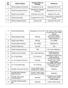 গৌরীশংকর মহাপাত্র:এগরা কাঁথি:পূর্ব মেদিনীপুর।পূর্ব মেদিনীপুরের জেলা পুলিশ সুপার হলেন অমরনাথ কে। পাশাপাশি জেলার বিভিন্ন থানার ওসি বদল হয় আজ। কোলাঘাট থানার ওসি রাজকুমার দেবনাথ বদলি হয়ে দুর্গাচক থানার ও সির দায়িত্বে। মন্দারমনি কোস্টাল থানার ওসি নাড়ুগোপাল বিশ্বাস বদলি হয়ে ভগবানপুর থানার ও সি, চন্ডীপুর থানার অফিসার ইমরান মোল্লা গেলেন কোলাঘাট থানায়। আশীষ বেরা গেলেন দুর্গাচক থেকে মন্দারমনি কোস্টাল থানার দায়িত্বে। পাঁশকুড়ার ওসি সুকমল ঘোষ গেলেন চন্ডীপুর থানার দায়িত্বে। ভগবানপুর থানার ওসি রাজা মন্ডল হলেন ও সি কন্টাই ট্রাফিক গার্ড। প্রসেনজিৎ প্রামানিক হলেন ওসি এগরা ট্রাফিক গার্ড আন্ডার কন্টাই ট্রাফিক গার্ড। অন্যান্য ভারপ্রাপ্ত অফিসাররা জেলার বিভিন্ন থানার দায়িত্বে ভিন্ন পদে পরিবর্তন হয়।