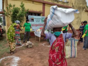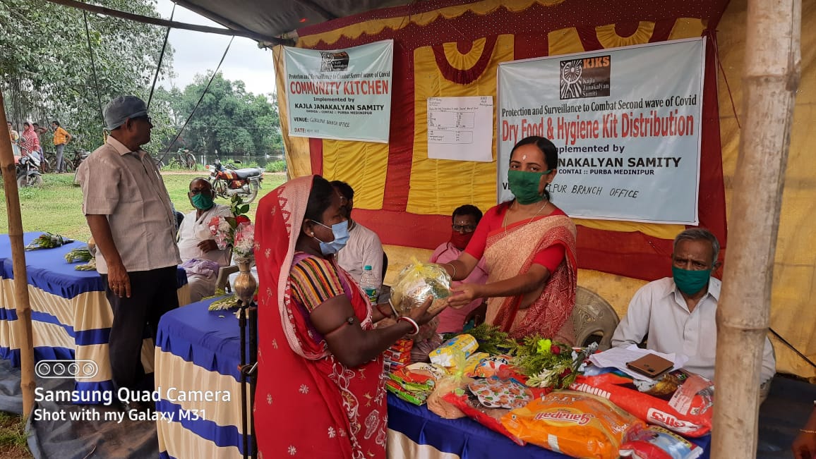 গৌরীশংকর মহাপাত্র : দৈনিক আবেশভূমি ডেস্ক :এগরা কাঁথি:পূর্ব মেদিনীপুর।কোভিডে সারা বিশ্বের সাথে সাথে ভারতবর্ষে এবং পশ্চিম বাংলার বহু মানুষ আক্রান্ত ।সাধারন মানুষ কাজ হারিয়ে অর্থনৈতিকভাবে দুর্বল। তাই কাজলা জনকল্যাণ সমিতির উদ্যোগে ও আন্তর্জাতিক স্তরের স্বেচ্ছাসেবী সংস্থা ” আজিম প্রেমজি ফাউন্ডেশন” এর সহযোগিতায় পূর্ব মেদিনীপুর জেলায় করোনা আক্রান্ত পরিবার বা পরিস্থিতির শিকার হওয়া পরিবারের জন্য পটাশপুর- ১এর গোকুলপুর শাখা অফিসে গোকুলপুর পঞ্চায়েতের ১২ টি গ্রামের ৪৭ টি পরিবারের ১৫৭ জনকে ( কমিউনিটি কিচেনের ) রান্না করে খাওয়ার প্যাকেটজাত করে বাড়ি বাড়ি পৌঁছে দেওয়া হয়। একমাস ধরে এই কর্মসূচি চলবে, এর উদ্বোধন করেন গোকুলপুর গ্রাম পঞ্চায়েতের প্রধান ইরানি মাইতি।ঐ পঞ্চায়েতের ১২ টি গ্রামের ২৫০ পরিবার ও কাঁথি -৩ ব্লকের কানাইদীঘি পঞ্চায়েতের ২ টি গ্রামের ৪৫০ পরিবার, কুমিরদা গ্রাম পঞ্চায়েত এর ৩টি গ্রামের ২৫০ পরিবার ও কাঁথি দেশপ্রাণ ব্লক এর ধোবা বেড়িয়া ও বাসন্তিয়া পঞ্চায়েতের ৩ টি গ্রামের ১৩৪ টি পরিবার মোট ১০৮৪ টি পরিবারের হাতে খাদ্য সামগ্রী ও স্বাস্থ্য কিট তুলে দেওয়া হয়। খাদ্য সামগ্রীতে চাল- ১৫ কেজি, ৫ কেজি আটা, তেল – ১ লিটার, ডাল -১ কেজি, সয়াবিন -১ কেজি, আলু – ৪ কেজি, পেঁয়াজ- ২ কেজি, ছোলার ছাতু -১ কেজি কেজি, স্বাস্থ্য কিটে সাবান -৮টি,ম্যাক্স – ৪টি, ওয়াশিং পাউডার ১ কেজি স্যানিটারি ন্যাপকিন ৪ পিস।এই বিতরণ অনুষ্ঠানে গোকুলপুর পঞ্চায়েতের বিতরণ অনুষ্ঠানে উপস্থিত ছিলেন পঞ্চায়েতের প্রধান ইরানি মাইতি, উপ-প্রধান লক্ষীকান্ত পাত্র,জেলা কর্মাধ্যক্ষ মৃণাল কান্তি দাস , হরিপদ দাস মহাপাত্র, কাজলা জনকল্যাণ সমিতির সাধারণ সম্পাদক স্বপন কুমার পন্ডা, ঐ শাখা অফিসের ভূমিদাতা অদ্বৈত চরণ ঘোড়াই প্রমুখ।দেশপ্রাণ ব্লকে বসান্তিয়া গ্রাম পঞ্চায়েতে দক্ষিণ আড়িয়া শীতলা মন্দিরের সম্মুখে বিতরণে উপস্থিত ধোবাবেড়িয়া পঞ্চায়েতের প্রধান ফাল্গুনী মন্ডল, রসুলপুর সংসদের জনদরদী নেতা সমবায়ী দেবকুমার গায়েন, উত্তর দেউলপোতা সংসদের সমাজসেবী মলয় গিরি, প্রদ্যোত পাত্র, ধোবাবেড়িয়া পঞ্চায়েতের বলাই লাল মন্ডল, কাজলা জনকল্যাণ সমিতির কোষাধক্ষ্য প্রণয় কুমার পাল প্রমুখ। কাঁথি- ৩ এর কানাইদিঘি পঞ্চায়েতের জগুদাস বাড় গ্রামে বিতরণ পর্বে ছিলেন কাঁথি- ৩ পঞ্চায়েত সমিতির সভাপতি মিতারানী সাউ, সহ-সভাপতি বিকাশ বেজ, কানাইদীঘি পঞ্চায়েত প্রধান দীপান্বিতা ওঝা, সদস্য শ্রীপতি মাঝি, কুমীরদা পঞ্চায়েত প্রধান শিবানী খিলা, উপ-প্রধান জিতেন্দ্র মন্ডল , পঞ্চায়েত সমিতির সদস্য লক্ষ্মণ মন্ডল। কাজলা জনকল্যাণ সমিতির সহ-সভাপতি জনাব আকবর আলি খান, সমিতির কার্যকরী সদস্য তপন সাহু প্রমুখ।কাজলা জ