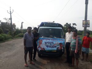 হাতে।ত্রান সামগ্রীতে চিড়া –৫ কুইন্টাল,মুড়ি – ৩ কুইন্টাল,চিনি ১ কুইন্টাল,বিস্কুট ১০০০ প্যাকেট,জলেরবোতল-১০০০ টি লরি যোগে পৌঁছেদেন। বুথ স্তর পর্যন্ত এই ত্রাণ সুষম বণ্টনের পরামর্শ দেন, আগামী দিনে আরও ত্রাণ পাঠানোর আশ্বাস দেন। বন্যার ক্ষয়ক্ষতির ব্যপকতায় স্তম্ভিত হন।