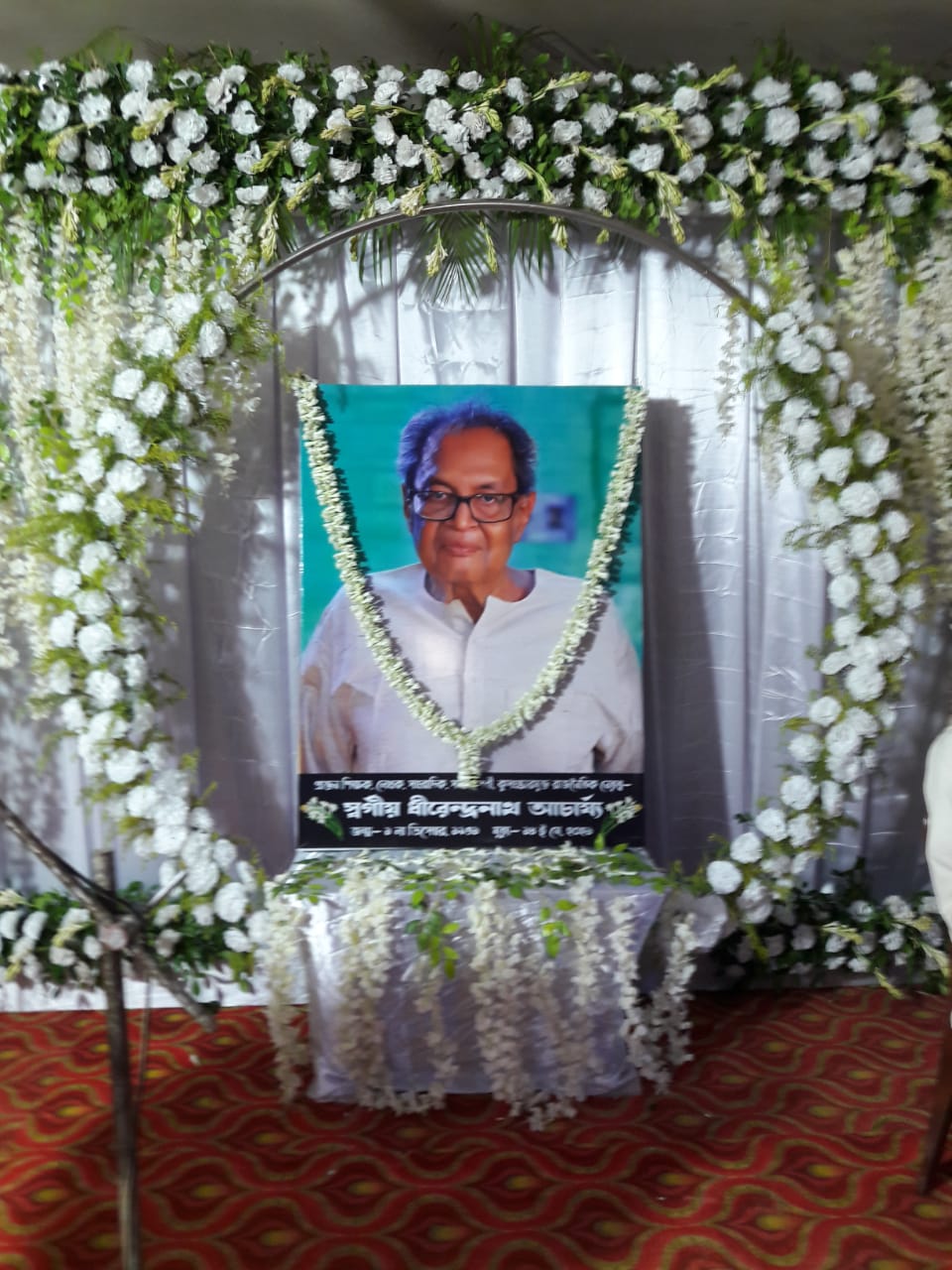 গৌরীশংকর মহাপাত্র: দৈনিক আবেশভূমি: এগরা কাঁথি: পূর্ব মেদিনীপুর।২৯ মে রবিবার প্রাক্তন শিক্ষক, লেখক, সাংবাদিক, সমাজসেবী, কুসংস্কারমুক্ত রাজনীতিক ধীরেন্দ্রনাথ আচার্যের পরিবারের পক্ষে এক স্মরণসভার আয়োজন হয় এগরার সুশীল উৎসব ভবনে।২০২১ এর১৮ ই মে করোনা পরিস্থিতির মধ্যে সকলের মায়া কাটিয়ে কাঙ্খিত লক্ষ্যে পাড়িদেন এই কুসংস্কারমুক্ত বামপন্থী রাজনীতিক ধীরেন বাবু। বৎসরান্তে তার বর্ণময় কর্মজীবন নিয়ে আলোচনায় বর্তমান প্রজন্মের কৌতূহলী মানুষদের সমৃদ্ধ করার আয়োজন হয়। স্মরণ সভায় বক্তাদের আলোচনায় উঠে আসে, ছাত্র জীবনে তার বৃটিশ বিরোধী ভূমিকা, কঠোর বাম পন্থার কারণে রেলের চাকুরী থেকে বরখাস্ত, সংগঠক শিক্ষক হিসেবে যোগদান ও দক্ষতার সঙ্গে শিক্ষা দান, সাংবাদিক হিসেবে তাঁর লেখার বলিষ্ঠতা, এগরা থেকে প্রকাশিত দৈনিক “সংবাদ সম্প্রতি”র সম্পাদনায় তার নীরব ও বলিষ্ট ভূমিকা, বহুল প্রচারিত বাংলা সংবাদপত্র “কালান্তর”, “ত্রৈমাসিক শ্রমশক্তি,” ‘দৈনিক চেতনা”, সাহিত্য পত্রিকা “কালের চেতনা’ পত্র পত্রিকায় তার বুদ্ধিদীপ্ত প্রবন্ধ রচনার মৌলিকত্ব সমকালকে ভাবিত করেছে। এগরা জ্ঞানদীপ বিদ্যাপীঠ ও খাড় হাইস্কুল, খাড় সাধারণ পাঠাগার স্থাপনের মধ্য দিয়ে এলাকার শিক্ষা বিস্তারে তার মৌলিক চিন্তাধারা প্রসংশার দাবি রাখে, যা তারা অবর্তমানে তাকে আজও শ্রদ্ধার সঙ্গে স্মরণ করে। কন্টাই প্রেসক্লাবের সদস্য হিসেবে তার ভূমিকা, প্রতিটি কাজে তার নিষ্ঠা, ব্যক্তিগত ও পারিবারিক সুখ-স্বাচ্ছন্দ্যকে উপেক্ষা করে সমাজের সার্বিক কল্যাণে তার কাজ, বিপ্লবী মার্কসবাদী-লেনিনবাদী আদর্শে বিশ্বাস প্রভৃতি আলোচকদের আলোচনায় গুরুত্ব পায়। তা়ঁর নাস্তিক জীবনে একমাত্র ধর্ম,যুক্তি নিষ্ঠা ও হৃদয়বৃত্তির দ্বারা মুহূর্তে তিনি সকলকে আকৃষ্ট করতেন পারতেন। সভায় পৌরোহিত্য করেন আঞ্চলিক ইতিহাস গবেষক বহু গ্ৰন্থ প্রনেতা সাহিত্যিক শান্তিপদ নন্দ। আলোচনায় অংশ নেন খাড় হাইস্কুলের প্রধান শিক্ষক কমল কুমার পন্ডা, প্রাক্তন প্রধান শিক্ষক ড: কালিপদ প্রধান, ভগৎসিং মেমোরিয়াল ট্রাস্ট সভাপতি চন্ডীপ্রসাদ রথ, খড়গপুর কলেজের অধ্যাপক তাঁর জামাতা জয়ন্ত মাইতি, চিকিৎসক পৌত্র ডা সমুজ্জ্বল মাইতি, ড: অনীশ আচার্য ও ড:শঙ্কর প্রসাদ রথ প্রমুখ। স্মৃতিচারণ শেষে উপস্থিত সকলকে ধন্যবাদ জানান পরিবারের পক্ষে প্রভাত,পলাশ ও রথীন আচার্যরা।