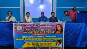 গৌরীশংঙ্কর মহাপাত্র : দৈনিক আবেশভূমি মেদিনীপুর পূর্ব পশ্চিম ও ঝাড়গ্ৰাম।বিদ্যাসাগর বিশ্ববিদ্যালয়ের অধীন ,পূর্ব মেদিনীপুরের যোগদা সৎসঙ্গ পালপাড়া মহাবিদ্যালয়ে ন্যাক স্বীকৃতি ও মূল্যায়ন সংক্রান্ত সচেতনতা মূলক এক দিনের কর্মশালা অনুষ্ঠিত হয় ২৭শে জুন মঙ্গলবার। স্বাগত বক্তব্যে মহাবিদ্যালয়ের ন্যাক স্টিয়ারিং কমিটির কোঅডিনেটর ড. তুষারকান্তি মণ্ডল কর্মশালার লক্ষ্য ও উদ্যেশ্য তুলে ধরেন। সভার সভাপতি ও মহাবিদ্যালয়ের অধ্যক্ষ ড. প্রদীপ্ত কুমার মিশ্র চারাগাছে জলসিঞ্চনের মধ্য দিয়ে কর্মশালা উদ্বোধন করে কর্মশালার লক্ষ্য ও উদ্দেশ্য ব্যাখ্যা করেন। প্রধান বক্তা ডেবরা শহীদ ক্ষুদিরাম স্মৃতি মহাবিদ্যালয়ের অধ্যক্ষা ড. রূপা দাশগুপ্তা ন্যাক স্বীকৃতি ও সংশোধিত মূল্যায়ন সম্পর্কে দুটি পর্যায়ে বিস্তারিত আলোচনা করে সকলকে সমৃদ্ধ করেন।কর্মশালার আহ্বায়ক ও আই কিউ এ সির কোঅডিনেটর ড. অনিরূদ্ধ সিনহা, আই কিউ এ সির সদস্য ও দর্শন বিভাগীয় প্রধান ড. মৃণাল কান্তি দে, মহাবিদ্যালয়ের অধ্যাপক, অধ্যাপিকা, শিক্ষাকর্মী প্রায় ১১০জন অংশগ্রহণ করেন। সমগ্র অনুষ্ঠান পরিচালনা করেন ইংরাজী বিভাগের সহকারী অধ্যাপিকা শ্রীময়ী রায়।ধন্যবাদ জ্ঞাপন করেন দর্শন বিভাগের সহকারী অধ্যাপিকা ড. কৃষ্ণা বসু ঠাকুর।