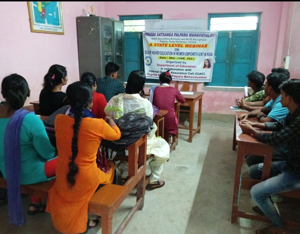 গৌরীশংকর মহাপাত্র: দৈনিক আবেশভূমি: মেদিনীপুর পূর্ব পশ্চিম ও ঝাড়গ্রাম।যোগদা সৎসঙ্গ পালপাড়া মহাবিদ্যালয়ের শিক্ষাবিজ্ঞান বিভাগের উদ্যোগে একদিনের রাজ্যস্তরীয় আলোচন চক্রের আয়োজন হয় বুধবার। আলোচনা চক্রের শুভ উদ্বোধন করেন কলেজের অধ্যক্ষ ড: প্রফেসর প্রদীপ্ত কুমার মিশ্র।স্বাগত বক্তব্য রাখেন বিভাগীয় কো অর্ডনেটর ড:অমিত কুমার মাইতি। প্রধান বক্তা কল্যাণী বিশ্ববিদ্যালয়ের শিক্ষা বিজ্ঞান বিভাগের বিভাগীয় প্রধান প্রফেসর দেবযানী গুহ তার বক্তব্যে নারী ক্ষমতায়নের পেছনে মানসিক উপাদান ও উচ্চ শিক্ষার ভূমিকা তুলে ধরেন। বিভাগীয় প্রধান ড: জয়িতা প্রামাণিক ভারতবর্ষের নারী ক্ষমতায়নের বাস্তব চিত্র তুলে সভাকে সমৃদ্ধ করেন ।শতাধিক ছাত্রছাত্রী অনুষ্ঠানে অংশনেয়।শেষে বিভাগীয় অধ্যাপিকা প্রিয়াঙ্কা সামন্তের ধন্যবাদ জ্ঞাপনে অনুষ্ঠানে সমাপ্তি ঘটে।