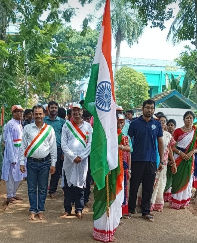গৌরীশংকর মহাপাত্র: দৈনিক আবেশভূমি:মেদিনীপুর পূর্ব পশ্চিম ও ঝাড়গ্রাম।যোগদা সৎসঙ্গ পালপাড়া মহাবিদ্যালয়ে ৭৭তম স্বাধীনতা দিবস উদযাপন হয় মঙ্গলবার। মহাবিদ্যালয়ের পক্ষে পতাকা উত্তোলন ও শহীদ বেদিতে পুষ্পার্ঘ নিবেদনে অনুষ্ঠানের সূচনা করেন অধ্যক্ষ ড. প্রদীপ্ত কুমার মিশ্র। ছিলেন অধ্যাপিকা ড. শ্রীমতী পণ্ডিত,ড. লক্ষীকান্ত ষড়ঙ্গী, অধ্যাপক সুজিত মণ্ডল, অধ্যাপক সৌমেন রায়, অধ্যাপক সঞ্জয় সিং, আনন্দ মোহন মাইতি, মানস প্রসূন ভট্টাচার্য্য, সত্যেন্দ্র নাথ আদক, বনমালী খাটুয়া, অর্পিতা সামন্ত প্রমুখ।