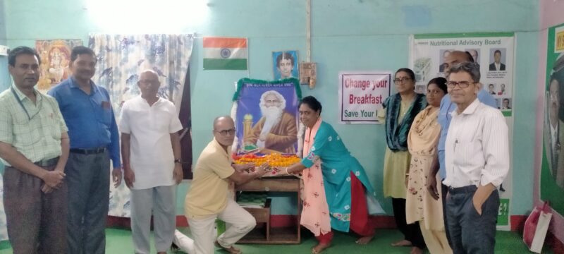 রাজকুমার মহাপাত্র: দৈনিক আবেশভূমি: এগরা কাঁথি, মেদিনীপুর পূর্ব পশ্চিম ও ঝাড়গ্রাম।। কাঁথি ভবতারিণী মন্দির সংলগ্ন হারবাল নিউটেশন( ম্যেনি প্রবলেম ওয়ান সলিউশন) সেন্টার ,লাইফ স্টাইল -২তে সংস্থার সদস্য ও সদস্যগণ বুধবার সকালে শরীর চর্চায় এসে বিশ্বকবি রবীন্দ্রনাথের ১৬৪তম জন্মদিন যথাযথ মর্যাদায় পালন করেন। রবি ঠাকুরের প্রতিকৃতিতে পুষ্পার্ঘ নিবেদন ও কবির বাল্যজীবন স্মৃতি চারণায় কর্মসূচির সূচনা করেন ফুলেশ্বর দুরমঠ হাই
