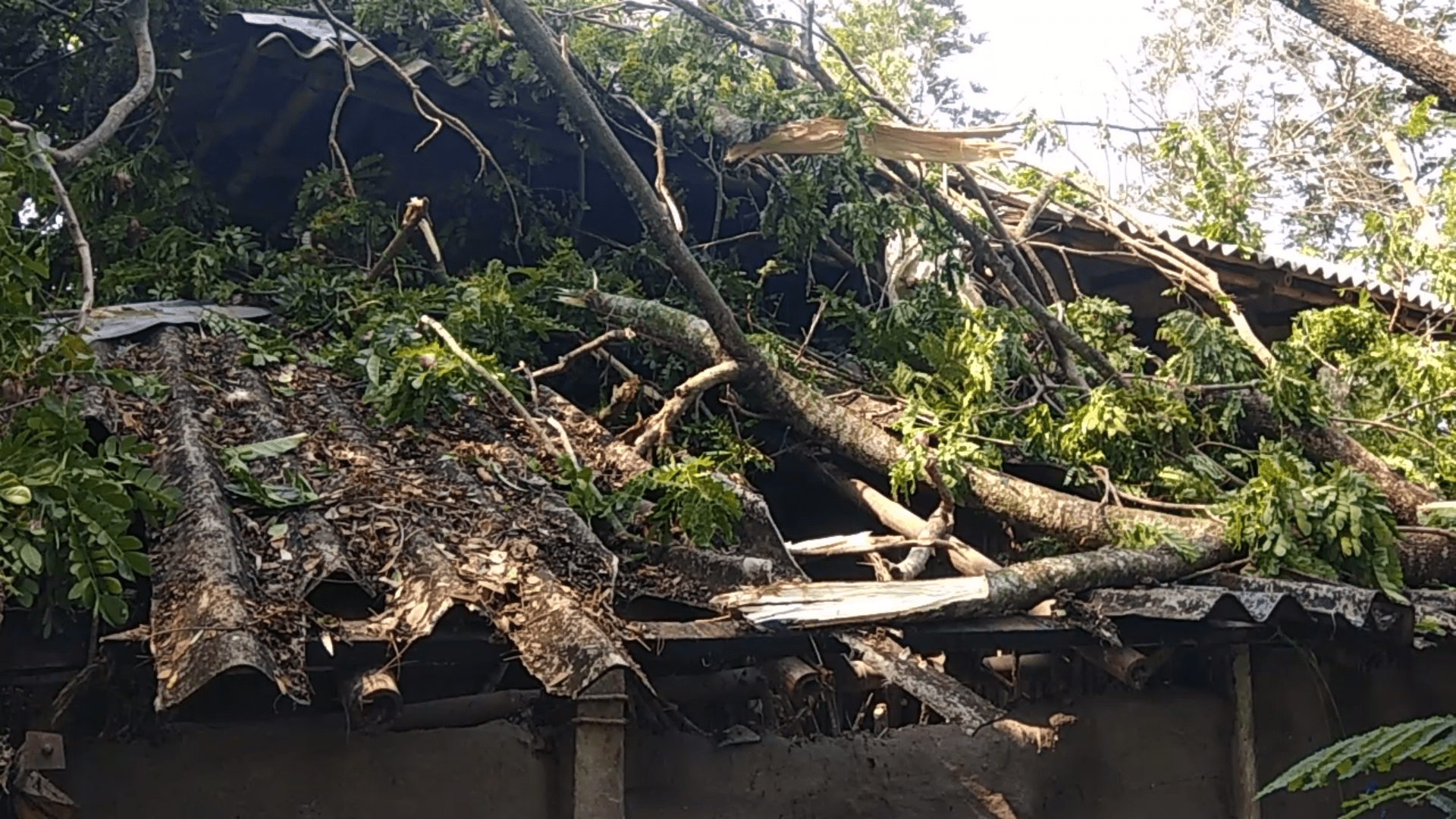 সঞ্জীব আচার্য্য, পটাশপুর :গতকাল সন্ধ্যায় কালবৈশাখীর ঝড়ে তছনছ পূর্ব মেদিনীপুর জেলার পটাশপুরের খাড় 3 নং অঞ্চল এলাকা।ঝড়ের তীব্রতা এতটাই জোড়ালো ছিলো যে বড় বড় মোটা গাছ এই এলাকার বাড়ির এডব্রেস্টার এর উপর পড়ার ফলে এডব্রেস্টার ভেঙে যায়।শুধু এডব্রেস্টার নয় বিদ্যুতের তার ও কেবল লাইনের তার ও ছিঁড়ে যায়।অভিযোগ এর জেরে বিদ্যুৎ পরিষেবা বন্ধ হয়ে যায়।