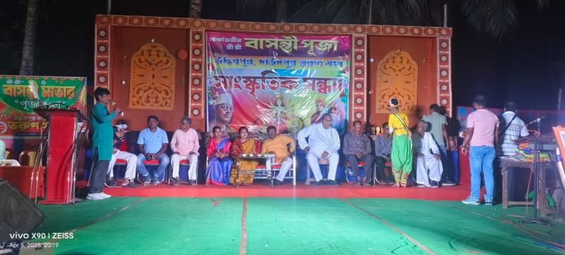 গৌরীশংকর মহাপাত্র ও রাজকুমার মহাপাত্র,আবেশভূমি ডিজিটাল, এগরা কাঁথি, মেদিনীপুর পূর্ব পশ্চিম ও ঝাড়গ্ৰাম।এগরা-২ব্লকের বিবেকানন্দ পঞ্চায়েতের উর্দ্ধবপুর দাউদপুর তরুণ সংঘের ৭২ তম সার্বজনীন বাসন্তী পূজা উপলক্ষে শনিবার মহা অষ্টমীর সন্ধ্যায় সাংস্কৃতিক অনুষ্ঠানের পাশাপাশি “বিবেকানন্দ বর্তমান ভারত” শীর্ষক এক আলোচনা হয়। অনুষ্ঠানে উপস্থিত ছিলেন বালিঘাই জগন্নাথ জীউ সেবা সমিতির কর্ণধার একালের দানবীর আশিস ধাওয়া। সঙ্গে জেলা পরিষদ সদস্য প্রদীপ বর, বিবেকানন্দ পঞ্চায়েতে প্রধান মনীষা গুচ্ছাইৎ, স্থানীয় পঞ্চায়েত সদস্যা পূর্ণিমা গিরি ,বালিঘাই জগন্নাথ জীউ সেবা সমিতির কার্যকরী সভাপতি অহীন্দ্র কুমার রায়, যুগ্ম সহ-সম্পাদক বিরোজাকান্ত প্রধান প্রমূখ।সভায় পৌরহিত্য করেন সংস্থা সভাপতি হৃষিকেশ মাইতি। স্বাগত ভাষণ দেন সম্পাদক অলক মাইতি। সভাপতি জানান আগামীকাল প্রভাত অপেরার যাত্রা পালা, সোমবার দুপুরে মহোৎসব এবং রাত্রিতে দীপায়ন ব্যানার্জী অভিনীত যাত্রা পালা।এ দিন অনুষ্ঠান মঞ্চে সেবা কর্মসূচি হিসেবে বালিঘাই জগন্নাথ জীউসেবা সমিতির কর্ণধার আশিস ধাওয়া ৪০জনকে মশাবাহিত রোগ প্রতিরোধে মশারি,১৫ জন মহিলাকে পূজা উপহার শাড়ী, ১৫ জনকে শাল তুলে দেন। তিনি তার বক্তব্যে বলেন সেবা সমিতির অধীন ৭৩ ক্লাবের অধীন এই ক্লাব সারা বৎসর শুধু পূজার্চনা নয় নানান সেবা মূলক কর্মসূচি গ্রহণ করে। যতদিন এরা মানুষের সেবায় থাকবে ততদিন সেবা সমিতি এদের পাশে থেকে সহযোগিতা করবে। তিনি মা দুর্গার কাছে প্রার্থনা করেন যতদিন বাঁচিয়ে রাখবেন তিনি তৎদিন যেন মানুষের সেবা করার সুযোগ দেন।শেষে উপস্থিত সকলকে ধন্যবাদ জানান ক্লাব সভাপতি হৃষিকেশ মাইতি।