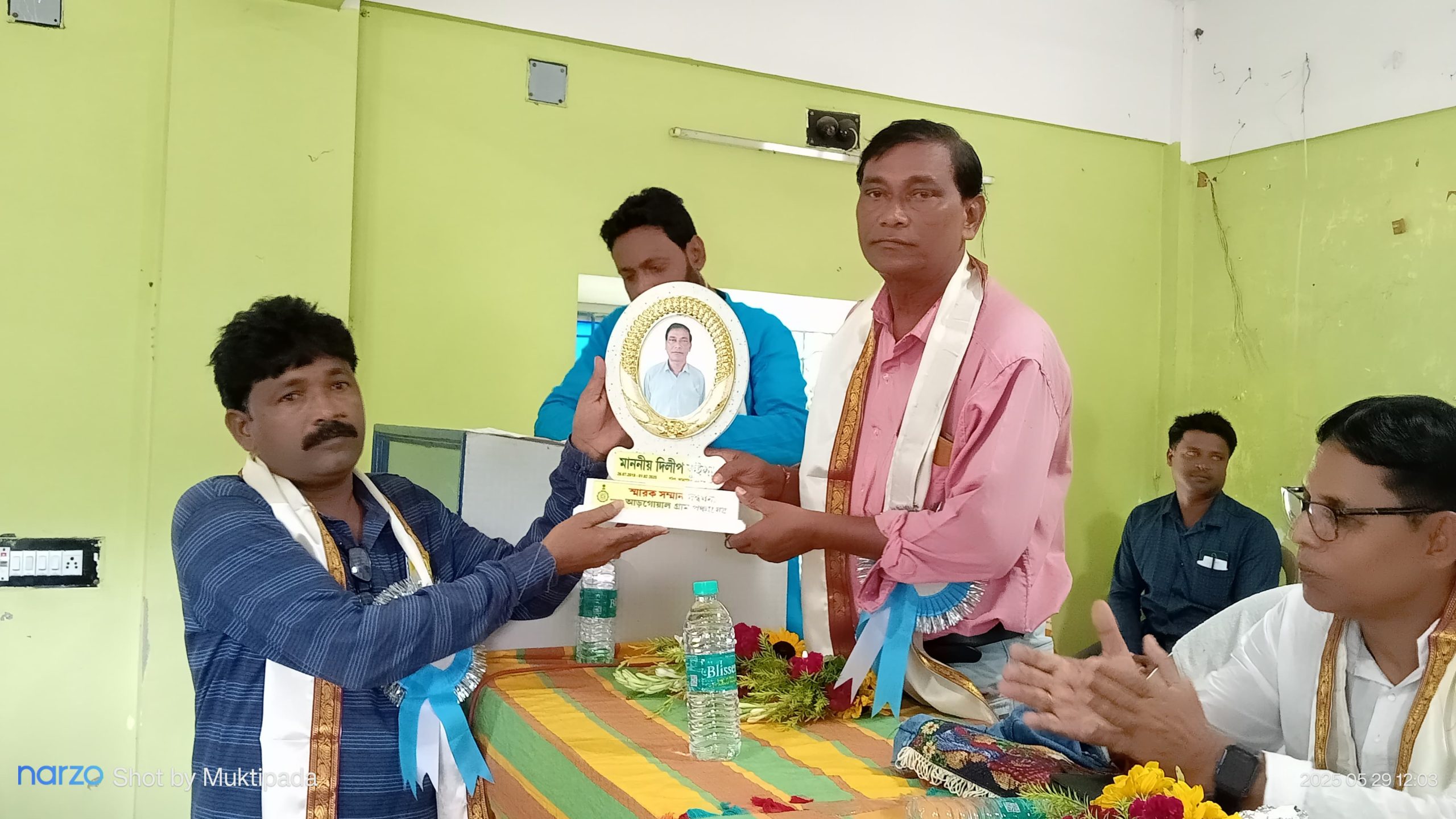 গৌরীশংকর মহাপাত্র ও রাজকুমার মহাপাত্র,আবেশভূমি ডিজিটাল: মেদিনীপুর পূর্ব পশ্চিম ও ঝাড়গ্ৰাম।পটাশপুর ২ ব্লকের আড়গোয়াল পঞ্চায়েতের পক্ষে পঞ্চায়েত কর্মীদের ও প্রাক্তন প্রধানদের সম্বর্ধনা জ্ঞাপনের আয়োজন হয় বৃহস্পতিবার।এদিন পঞ্চায়েতের বিদায়ী পঞ্চায়েত কর্মী, প্রাক্তন প্রধান,উপ প্রধানদেরও ফুল,ব্যাজ, উত্তরীয় ও উপহার সামগ্রী দিয়ে সম্বর্ধনা জানান পঞ্চায়েত। স্বাগত ভাষণে সভার সভাপতি পঞ্চায়েত প্রধান মালেক আলি জানান এদিন পঞ্চায়েতের বিদায়ী সহায়ক উৎপল কয়েল, নির্মাণ সহায়ক গোপীনাথ কালী, অবসরপ্রাপ্ত সচিব দিলীপ কুমার কুইলা, দায়িত্বপ্রাপ্ত এক্সিকিউটিভ মাধব চন্দ্র শীট, ২০১৪ থেকে বিদায়ী পঞ্চায়েত প্রধান যথাক্রমে শিবানী নন্দ গোস্বামী, মৌমিতা সর্দার পাল, অর্পিতা বর, ভারপ্রাপ্ত প্রধান অপরের সাঁতরা, জেলা পরিষদ সদস্য গোলকেশ নন্দগোস্বামী, পটাশপুর ১ পঞ্চায়েত সমিতির সহ-সভাপতি পীযুষ কান্তি পন্ডাকে সম্বর্ধনা জ্ঞাপন হয়। এরা সকলেই পঞ্চায়েত ও পঞ্চায়েত এলাকার মানোন্নয়নে আপ্রাণ সহযোগিতা করেছেন। তাদের তাদের প্রতি কৃতজ্ঞতা জানাতে বর্তমান বোর্ডের এই এমন পদক্ষেপ যাতে বর্তমান প্রজন্ম সমৃদ্ধ হতে পারে। আগামী দিনে এই পঞ্চায়েতে আসবেন নিজের মত ভেবে দরদ দিয়ে মানুষকে পরিষেবা দিতে অনুপ্রাণিত হন। একই সঙ্গে যারা নতুন আসছেন তাদের কি আজ সম্বর্ধনা দেওয়া হচ্ছে? এই প্রশ্নের উত্তরে প্রধান জানান “👌তাদেরও সম্মানিত করার আয়োজন ছিল কিন্তু তারা এই নির্দিষ্ট সময়ের মধ্যে পঞ্চায়েতে যোগদান করতে না পারায় পরবর্তী সময়ে তাদের সম্বর্ধনা জ্ঞাপন করা হবে।সঞ্চালনায় প্রাক্তন উপ প্রধান অপরেশ সাঁতরা। শেষে উপস্থিত সকলকে ধন্যবাদ জ্ঞাপন করেন পঞ্চায়েতের উপপ্রধান রুমা প্রধান।
