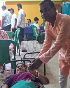 গৌরীশঙ্কর মহাপাত্র ও রাজকুমার মহাপাত্র,আবেশভূমি ডিজিটাল : পূর্ব মেদিনীপুর জেলার এগরা ১ ব্লকের উদ্যোগে ঋষি বঙ্কিম চন্দ্র পঞ্চায়েত ও জুমকী পঞ্চায়েতের সহযোগিতায় বৃহস্পতিবার জোড়া রক্তদান শিবির অনুষ্ঠিত হয়। ব্লাড ব্যাঙ্কে রক্তের চাহিদা মেটাতে প্রশাসনের উদ্যোগে একাধিক জায়গায় পঞ্চায়েত, ব্লক, পুলিশ প্রশাসন ও বিভিন্ন স্বেচ্ছাসেবী সংগঠন স্বেচ্ছায় রক্তদান শিবিরের আয়োজন করেন। বৃহস্পতিবার দুটি শিবিরে রক্তদাতাদের হাতে পুষ্পস্তবক দিয়ে সম্মানিত করার মধ্য দিয়ে শিবির দুটির উদ্বোধন করেন এগরা ১ পঞ্চায়েত সমিতির বর্ষীয়ান সভাপতি অমিয় রাজ ও ব্লকের বিডিও দূর্গাপ্রসাদ ঘোষ। আর বি সিতে উপস্থিত ছিলেন পঞ্চায়েত প্রধান রৌপ হোসেন, উপ-প্রধান প্রতিভা দাস, প্রাক্তন উপ প্রধান যোগেন্দ্রনাথ মাইতি, পঞ্চায়েতের সঞ্চালক স্বপন প্রামাণিক, পঞ্চায়েত সদস্য সুবল চন্দ ও কাইয়ুম খান, গোপাল বেরা, নিতাই মাইতি, আপতার খান প্রমুখ। শিবিরে ৭২ জন রক্তদান করেন। পাশাপাশি জুমকী শিবিরে ছিলেন প্রধান সত্যেন দাস, উপ প্রধান সঞ্জীব প্রধান সহ ৪ সঞ্চালক, কৃষি ও সেচ ইন্দ্রজিৎ মাইতি, পূর্ত ও জনসংযোগ ভবতোষ পাত্র, শিশু ও নারী কল্যাণ সুস্মিতা পাত্র, শিক্ষা ও জনস্বাস্থ্যের তনয়া গিরি প্রমুখ।প্রধান জানান শিবিরে ৪২ জন রক্তদিয়েছেন এবং গত ২৭ তারিখ চাটলা শিবিরে ৬৩ জন রক্তদান করেন। আজ দুটি শিবিরে রক্তদান।সংগ্ৰহ করেন এগরা সুপার স্পেশালিটি ব্লাড ব্যাঙ্ক। এই ভাবে রক্তদান শিবিরের ফলে রক্তের চাহিদা কিছুটা হলেও মিটছে। বর্তমান তাপমাত্রা অতিরিক্ত বৃদ্ধি পাওয়ায় শিবিরে রক্তদান করতে অনেকেই অনীহা প্রকাশ করছেন। এগরা-১ বিডিও দুর্গাপ্রসাদ ঘোষ জানান জেলা প্রশাসন যে টার্গেট বেঁধে দিয়েছিল সেই লক্ষ্যমাত্রা অতিক্রম করে যাবে আজকের শেষ দিনের রক্তদানের মধ্য দিয়ে। আজ দুটি পঞ্চায়েতে শিবির হচ্ছে। গতকাল পর্যন্ত ৪৭৭ জন রক্ত দিয়েছিলেন। আমাদের লক্ষ্যমাত্রা ছিল ৬০০ ।গত বছর আগস্ট মাসে ব্লক স্তরে রক্তদান শিবিরের আয়োজনে ৮টি পঞ্চায়েতের সমস্ত মানুষের অংশগ্রহণে যেমন অসুবিধে ছিল তেমনি রক্ত সংগ্রহেরও সমস্যা ছিল। এবার ব্লকের শিবির ডি-সেন্ট্রালাইজ করে পঞ্চায়েতে পঞ্চায়েতে আয়োজন করায় সুবিধে হয়েছে। মানুষের অংশগ্রহণ ও স্বতঃস্ফূর্ততা প্রশংসারযোগ্য। পঞ্চায়েতের পাশাপাশি স্বেচ্ছাসেবী সংগঠনগুলির শিবিরের আয়োজন ছিল উল্লেখযোগ্য।পঞ্চায়েতের পক্ষে সকলকে ধন্যবাদ জানান প্রধান রৌফ হোসেন ও সত্যেন দাস।