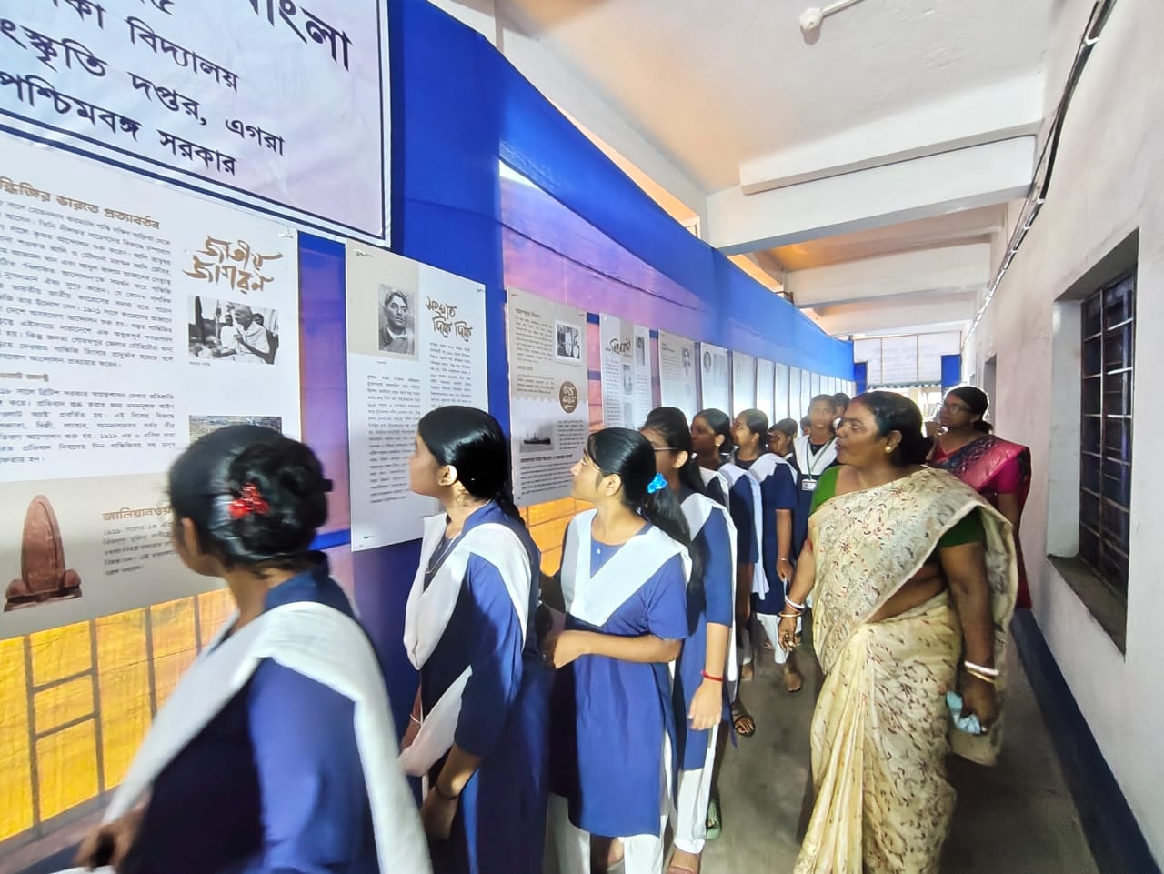 গৌরীশংকর মহাপাত্র ও সঞ্জীব আচার্য দৈনিক আবেশভূমি : পূর্ব মেদিনীপুর জেলার এগরা মহকুমা তথ্য ও সংস্কৃতি দপ্তরের উদ্যোগে এগরা স্বর্ণময়ী বালিকা বিদ্যালয়ে বৃহস্পতিবার থেকে শুরু হয় ‘ভারতের মুক্তি সংগ্রামে বাংলা’ শীর্ষক পোস্টার প্রদর্শনী।এই প্রদর্শনীতে বাংলার স্বাধীনতা সংগ্রামের নানা অধ্যায়, বিপ্লবী আন্দোলন, দেশপ্রেমিক দের অবদান এবং ইতিহাসের গুরুত্বপূর্ণ ঘটনাবলী চিত্ররূপে উপস্থাপিত হয়। ছাত্রছাত্রীদের মধ্যে স্বাধীনতার ইতিহাস সম্পর্কে সচেতন করার লক্ষ্যে আয়োজিত এই প্রদর্শনী চলবে আগামী ২৩শে আগস্ট পর্যন্ত।প্রদর্শনীর উদ্বোধন করেন বিদ্যালয়ের প্রধান শিক্ষিকা কৃষ্ণকলি ভট্টাচার্য সঙ্গে মহকুমা তথ্য আধিকারিক সাহিন সারিয়ার আনসারী ও বিদ্যালয়ের শিক্ষিকাগণ।
