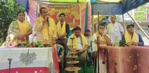 গৌরীশঙ্কর মহাপাত্র ও রাজকুমার মহাপাত্র, দৈনিক আবেশভূমি: পটাশপুর-২ ব্লকের মথুরা পঞ্চায়েতের “মংরাজ মাতৃ মন্দির সেবা সমিতি”র উদ্যোগে মংরাজ বাজারে শ্যামা মায়ের মন্দিরে শ্যামা পুজোর শুভ সূচনা হয় সোমবার।প্রদীপ উজ্জলের মাধ্যমে অনুষ্ঠানের শুভ সুচনা করেন পূর্ব মেদিনীপুর জেলা পরিষদের সভাধিপতি বিধায়ক উত্তম বারিক। উপস্থিত ছিলেন পটাশপুর-২ পঞ্চায়েত সমিতির সভাপতি স্বপন কুমার মাইতি , সাউৎখন্ড পঞ্চায়েত প্রধান বিজন বন্ধু বাগ , মথুরা পঞ্চায়েত প্রধান মৌসুমী রানী দাস প্রধান , প্রাক্তন পঞ্চায়েত সদস্য রাম শংকর মহাপাত্র, সমাজসেবীগণ সংগঠক বরুণ গিরি, কৃষ্ণেন্দু সনবিদ্রোহী , গোবিন্দ প্রধান , রবীন্দ্রনাথ মৈশাল প্রমুখ।এ দিন সুসজ্জিত নব নির্মিত প্রবেশপথের দারোৎঘাটন হয়।এই প্রবেশদ্বারের দাতা অসিত বরেন মাইতি। উদ্বোধক তার বক্তব্যে মা কালীর সৃষ্টি রহস্যের পৌরাণিক ইতিহাস তুলে অসুর নিধনে তার ভূমিকা উপস্থাপন করেন। পাশাপাশি প্রতিটি মানুষের মধ্যে যে সুরাসুর রয়েছে, প্রতিটি কাজ করার ক্ষেত্রে মনের মধ্যে শুভ অশুভের দ্বন্দ্বের প্রসঙ্গ তুলে সহজে তা উপস্থাপন করে উপস্থিত সকলকে সমৃদ্ধ করেন।অনুষ্ঠানের সঞ্চালনায় সুশীল কুমার দাস। দুপুরে কয়েক হাজার মানুষের মধ্যাহ্নভোজের ব্যবস্থা করা হয়। সবাইকে ধন্যবাদ জানান সেবা সমিতির সভাপতি তথ্য মন্দিরের প্রতিষ্ঠাতা প্রয়াত গোপাল পন্ডার ছেলে শংকর পন্ডা।