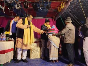 গৌরীশঙ্কর মহাপাত্র ও রাজকুমার মহাপাত্র,দৈনিক আবেশভূমি,১৭ জানুয়ারী:এগরা-২ব্লকের বাথুয়াড়ী পঞ্চায়েতের মহাকাল বাজারে দক্ষিণ চৌমুখ গ্রামবাসী বৃন্দের পরিচালনায় পাহাড়পুর গঙ্গোৎসব মেলার শনিবার ছিল চতুর্থ দিন। বুধবার ৫০০ বছরের প্রাচীন এই মেলার সূচনা হয়।প্রত্যহ সাংস্কৃতিক অনুষ্ঠান সেবা কর্মসূচি পাশাপাশি প্রত্যহ বিকালে নক আউট ফুটবল প্রতিযোগিতা চলছে ৮টি টিমের। চতুর্থ দিন সাংস্কৃতিক মঞ্চে সত্যনারায়ণ অপেরার “রণক্ষেত্রে রণরঙ্গিনী” যাত্রাপালা মঞ্চস্থ হয়। তার আগে বালিঘাই জগন্নাথ জীউ সেবা সমিতির পক্ষে ১০০ দুঃস্থকে মশারি (৫০)এবং (৫০) জনকে কম্বল বিতরণ করা হয়। দুস্থদের হাতে দান সামগ্রী তুলে দেন জগন্নাথ জীউ সেবা সমিতির কর্ণধার একালের দানবীর আশীষ ধাওয়া। তিনি পৌষ সংক্রান্তিতে ঐ জাতীয় মেলাকে বাঁচিয়ে রাখার জন্য স্থানীয় স্তরে সকলকে সহযোগিতার আহ্বান জানান। সংস্থার পক্ষেও আশীষ ধাওয়াকে উত্তরীয় , স্মারক ও উপহার সামগ্রী দিয়ে সম্মানিত করা হয়। সভায় পৌরহিত্য করেন মেলা কমিটির সভাপতি সুশান্ত বাড়ই ।ছিলেন কোষাধ্যক্ষ কানাইলাল বাড়ই প্রমুখ। সঞ্চালনায় প্রণব বাড়ই ।৮ দিনের এই মেলার সমাপ্তি ঘটবে ২১ জানুয়ারি বুধবার। উপস্থিত সকলকে ধন্যবাদ জানান মেলা কমিটির সম্পাদক শিক্ষক পিন্টু বাড়ই।