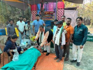 রাজকুমার মহাপাত্র,আবেশভূমি ডিজিটাল,১৮ জানুয়ারী:এগরা-২ব্লকের সর্বোদয় পঞ্চায়েতের বড় নলগেড়িয়া আমরা ক’জন সংঘের মনসা পূজা উপলক্ষে দ্বিতীয় দিন রক্তদান শিবিরের আয়োজন হয় রবিবার। ১০ম বর্ষের এই শিবিরে রক্তদাতা শেফালী মান্নাও অনুরাধা মান্নার হাতে পুষ্পস্তবক তুলে সম্মানিত করার মধ্য দিয়ে শিবিরের উদ্বোধন করেন বালিঘাই জগন্নাথ জীউ সেবা সমিতির কর্ণধার একালের দানবীর আশিস ধাওয়া।এগরা ব্লাড ব্যাংক ১২ জন মহিলা সহ ৩২জনের রক্ত সংগ্রহ করে। ছিলেন সেবা সমিতির অন্যতম কর্মকর্তা সহেল ধাওয়া, এগরা প্রেসক্লাব ও এগরা মহকুমা বই মেলার সম্পাদক গৌরীশংকর মহাপাত্র, সংস্থার সভাপতি উত্তম পন্ডা, কোষাধ্যক্ষ হরিপদ দাস, সর্বোদয় পঞ্চায়েতের প্রাক্তন প্রধান প্রদ্যোৎ মাইতি ,অশতিপর প্রাক্তন শিক্ষক নগেন্দ্রনাথ মান্না,ক্লাব সদস্য খোকন দাস, ইন্দু ভূষণ দাস, মনিভূষণ দাস, পিনাকী শংকর মান্না প্রমুখ।অনুষ্ঠানের সঞ্চালনায় প্রাক্তন শিক্ষক পরেশ চন্দ্র পয়ড়্যা ।বক্তব্যে উদ্বোধক আশিস ধাওয়া বলেন যারা রক্ত দিলেন তাদের ধন্যবাদ জানাই ।আপনারা জানেন না রক্তদানের মধ্য দিয়ে কি মহৎ কাজটি আপনারা করলেন।মানুষের জন্ম মৃত্যু ঠাকুর নিয়ন্ত্রিত।যেটুকু সময় পারেন মানুষের কাজ ও সেবার মধ্যে থাকুন, ভালো লাগবেন। পুষ্প আপনার জন্য ফোটে না সে পরের নিমিত নিজেকে প্রস্ফুটিত করে ।যেমন ধুপ নিজে পুড়ে লোককে সুবাস দিয়ে যায়। আপনারা আপনাদের এই মহতী কর্মকাণ্ডের মধ্য দিয়ে বিপন্ন মানুষকে পুনর্জন্ম দিতে পারছেন এটাই আনন্দের ও গৌরবের। সংস্থার কার্যকলাপে অত্যন্ত আনন্দিত সম্পাদক বলেন এলাকার মানুষের সেবায় আপনারা আরো কাজ করে যান। তিনি রাত্রিতে ৫০ জনের মশারি ও কম্বল পাঠিয়ে দেয়ার আশ্বাস দেন।পাশাপাশি তিনি এগরা ব্লাড ব্যাংকের পরিকাঠামো গত ত্রুটিগুলির জন্য ক্ষোভ প্রকাশ করেন বলেন যে খাট গুলোতে শুয়ে রক্তদাতারা রক্ত দিচ্ছেন তার মান এত খারাপ ?যেকোন সময় ভেঙে পড়তে পারে। এক্ষেত্রে তিনি এগরা সুপার স্পেশালিটি ব্লাড ব্যাংকের দৃষ্টি আকর্ষণেরপাশাপাশি রোগী কল্যাণ সমিতিকে এ বিষয়ে দৃষ্টি আকর্ষণ করে দেখার কথা বলেন ।প্রয়োজনে তিনি সহযোগিতার ও আশ্বাস দেন।যারা স্বেচ্ছায় রক্তদান করেন তাদের জন্য পরিষেবাটাও স্বাচ্ছন্দের হওয়া জরুরী। আয়োজক সংস্থা সম্পাদক বলেন রাত্রিতে বিষ্ণুলোক অপেরার যাত্রাপালা মঞ্চস্থ হবে ।বৈকালিক অনুষ্ঠানে অঙ্কন প্রতিযোগিতা হয় ও পুরস্কার বিতরণী হয়।