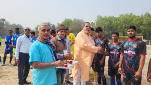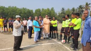 রাজকুমার মহাপাত্র ও সহেল ধাওয়া,আবেশভূমি ডিজিটাল,২৫ জানুয়ারী:বালিঘাই জগন্নাথ জীউ সেবা সমিতি আয়োজিত এক দিনের সমীর কুমার ধাওয়া স্মৃতি নকআউট ফুটবল প্রতিযোগিতা হয় রবিবার।বালিঘাই ফকিরদাস হাই স্কুল খেলার মাঠে সকালে ৮দলীয় এই প্রতিযোগিতায় বলে কিক দিয়ে খেলার উদ্বোধন করেন সেবা সমিতির কর্ণধার প্রয়াত সমীর ধাওয়া কৃতি সন্তান আশিস ধাওয়া। উপস্থিত ছিলেন সমীর ধাওয়ার সহধর্মিনী আলো ধাওয়া, এগরা প্রেসক্লাব, এগরা মহকুমা বইমেলা ও দৈনিক আবেশভূমি পত্রিকার সম্পাদক গৌরী শংকর মহাপাত্র। মঞ্জুশ্রী পঞ্চায়েত প্রধান শঙ্কর সাউ, এগরা-২ পঞ্চায়েত সমিতির প্রাক্তন সভাপতি প্রকাশ রায়চৌধুরী, বিবেকানন্দ পঞ্চায়েতের প্রাক্তন উপপ্রধান ধনঞ্জয় সিংহ,সেবা সমিতির কর্মকর্তা ও এই খেলার দায়িত্ব প্রাপ্ত কৃতী শিক্ষক তপন কুমার মন্ডল, শিশির মাইতি, মানগোবিন্দ জানা,সোহেল ধাওয়া, সৌরভ ধাওয়া প্রমুখ।শুরুতে জাতীয় পতাকা ও সংস্থার পতাকা উত্তোলন হয়।প্রয়াত সমীর ধাওয়া প্রতিকৃতিতে পুষ্পার্ঘ্য নিবেদনে সকলে শ্রদ্ধা জ্ঞাপনও করেন।উদ্বোধনী ম্যাচে দাঁতন স্পোর্টস একাডেমী ও এগরা এস সি এফ সি মুখোমুখি হয়।উদ্বোধক তার বক্তব্যে বলেন যুবকদের খেলায় উৎসাহিত করতে সংস্থার এমন উদ্যোগ। আমরা চাই যুবকরা আরও বেশি বেশি করে খেলাতে যুক্ত থাকলে শরীর যেমন ঠিক থাকবে সমাজে অপকর্ম অনেকটা কমবে। কথায় বলে আইডিল ব্রেন ইজ ডেভিল ওয়ার্কশপ। আগামী দিনে হারিয়ে যাওয়া হাডুডু, কাবাডি ও খো খো খেলা করার ইচ্ছা প্রকাশ করেন। এলাকার ক্রীড়া-প্রেমীরা সারাদিন খেলা উপভোগ করেন। খেলা শেষে পুরস্কার হিসেবে চাম্পিয়ান এগরা সিপিএফ সি দলকে১৫ হাজার টাকার চেক ও সুদৃশ্য ট্রফি তুলে দেন পরিবারের পক্ষে শ্রীমত্যা আলো ধাওয়া এবং রানার্স হাওড়া ফ্রেন্ডসকে ১০ হাজার টাকার চেক সহ সুদৃশ্য ট্রফি তুলেদেন প্রয়াত সমীর বাবুর কৃতি পৌত্র তথা আশীষ ধাওয়ার একমাত্র ছেলে সোহেল ধাওয়া। এই পর্বে উপস্থিত ছিলেন জেলা পরিষদ সদস্য প্রদীপ বর সহ সেবা সমিতির কর্মকর্তাগণ।সভায় পৌরহিত্য করেন কার্যকরী সভাপতি অহীন্দ্র কুমার রায়। সঞ্চালনায় যুগ্ম সহ সম্পাদক জন্মেঞ্জয় প্রধানও বিরজাকান্ত প্রধান। খেলা গুলি পরিচালনা করেন কাঁথি এগরা রেফারী সংগঠনের সম্পাদক কানাইলাল মন্ডল সহ দেবাশীষ দুলে, সঞ্জয় দেওয়া, হোপেন মূর্মু প্রমুখ। শেষে সংশ্লিষ্ট সকলকে ধন্যবাদ জানান সেবা সমিতির পক্ষে কার্যকরী সভাপতি অহীন্দ্রকুমার রায়।