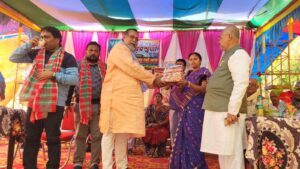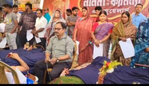 রাজকুমার মহাপাত্র ও সহেল ধাওয়া,আবেশভূমি ডিজিটাল,২৫ জানুয়ারী:পটাশপুর-২ ব্লকের সাউথখণ্ড পঞ্চায়েতের আয়মানচক দাদা ভাই সংঘ আয়োজিত সরস্বতী পূজা উপলক্ষে মেগা রক্তদান শিবির ও প্রবীণ নাগরিক সংবর্ধনার আয়োজন হয় রবিবার।রক্তদাতাদেরহাতে পুষ্পস্তবক দিয়ে সম্মানিত করার মধ্য দিয়ে শিবিরের উদ্বোধন করেন বালিঘাই জগন্নাথ জীউ সেবা সমিতির কর্ণধার একালের দানবীর আশিস ধাওয়া। সঙ্গে পটাশপুর-২ পঞ্চায়েত সমিতির সভাপতি স্বপন কুমার মাইতি, বিডিও শঙ্খ ঘটক,সাউথখন্ড পঞ্চায়েত প্রধান বিজন বন্ধু বাগ, এগরা প্রেসক্লাব, এগরা মহকুমা বইমেলা ও দৈনিক আবেশভূমি পত্রিকার সম্পাদক গৌরী শংকর মহাপাত্র, আড়গোয়াল পঞ্চায়েতের প্রাক্তন উপ-প্রধান অপরের সাঁতরা,স্থানীয় পঞ্চায়েত সদস্য সুভাষ মাইতি , পঞ্চায়েত সমিতির সদস্যা রাধারানী দাস, ব্রজ কিশোরপুর হাইস্কুলের প্রাক্তন যশশ্রী শিক্ষক শশাঙ্ক শেখর জানা,আড়গোয়াল পল্লীশ্রী এস কে ইউ এস এর সম্পাদক গৌরহরি জানা প্রমুখ। ছিলেন ব্রজকিশোরপুর হাই স্কুলের কৃতি ইংরেজি ভাষা শিক্ষক শুভাশিস গিরগোস্বামী,চিন্ময় দাস, প্রাক্তন শিক্ষক চপল নায়ক প্রমুখ।পৌরহিত্য করেন ক্লাব সভাপতি সৌমেন বায়েড়। স্বাগত ভাষণে ক্লাবের কর্ণধার তথা ভূমিদাতা সমাজসেবী উমাপদ মান্না জানান ১০ বছর ধরে ক্লাবে সরস্বতী মায়ের পূজার্চনা হয়ে আসছে ।এবছর প্রথম রক্তদান শিবির। এবছর ক্লাব রেজিস্ট্রেশন করা হয়েছে। সংস্থার পক্ষে উদ্বোধক ও অতিথিদের দ্বারা রামকৃষ্ণ মান্নাসহ বেশ কয়েকজন প্রবীণ ও প্রবীণাকে উপহার সামগ্রী দিয়ে নাগরিক সম্মাননা দেওয়া হয়। প্রতাপদীঘি লায়ন্স ক্লাব ও কোঠারী ব্লাড ব্যাংকের সহযোগিতায় আজকের এই রক্তদান শিবিরে ১০০ মহিলা সহ ১৪০ জন রক্তদান করেন।সন্ধ্যায় স্থানীয় ছোট ছোট শিশু শিল্পীদের নিয়ে মনোজ্ঞ সংস্কৃতি অনুষ্ঠানের আয়োজন রয়েছে। উদ্বোধক তার বক্তব্যে বলেন রক্তদান ও জীবন দান সমার্থক। সবধানের শ্রেষ্ঠ দান রক্তদান। এমন মহৎ কর্মে যুক্ত সকলকে ধন্যবাদ জানান। আগামী দিনে সংস্থার দান পাওয়া নিচু জায়গাটি ভর্তির ক্ষেত্রে স্থানীয় পঞ্চায়েত প্রধানকে অনুরোধের প্রয়োজনে সহযোগিতার আশ্বাসদেন ।আগামী বছরের অনুষ্ঠানের আগে এই সংস্থার শ্রীবৃদ্ধি ঘটে তেমন পরিকল্পনার পরামর্শ দেন।