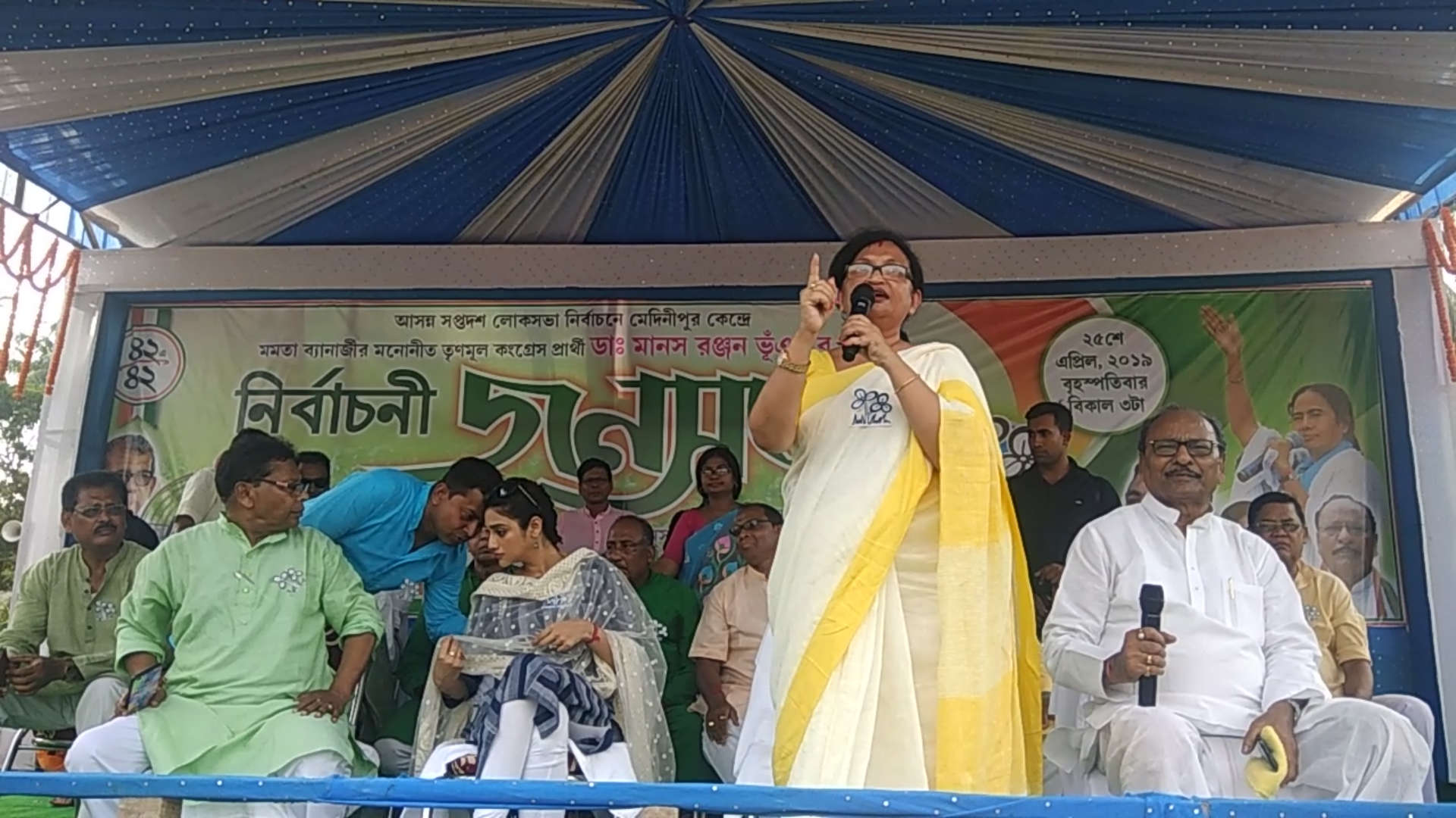 সঞ্জীব আচার্য্য ও শুভম সিং,এগরা :- পূর্ব মেদিনীপুরের এগরা জে এল হাই স্কুল মাঠে মানস ভূঞার সমর্থনে তৃণমূলের একটি নির্বাচনী সভা হয় বৃহস্পতিবার।
