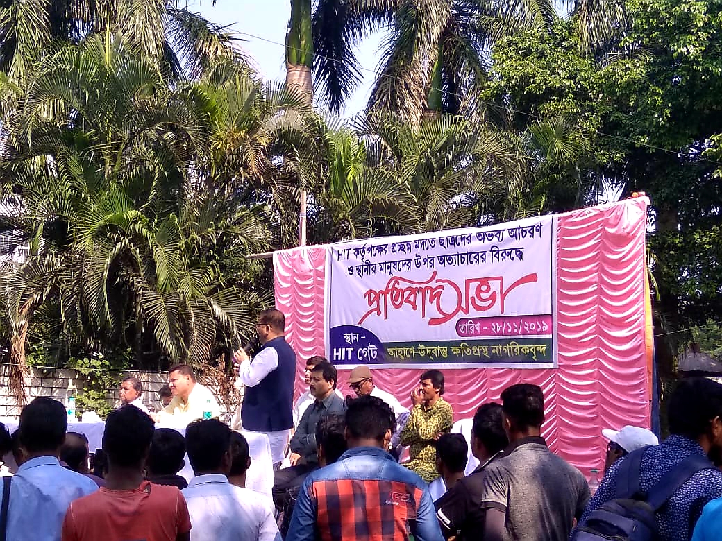 শুভম সিং, হলদিয়া- পূর্ব মেদিনীপুর : হলদিয়ায় হিট কলেজে কতৃপক্ষের প্রচ্ছন্ন মদতে ছাত্রদের অভব্য আচরণ ও স্থানীয়দের উপর অত্যাচারের বিরুদ্ধে বৃহস্পতিবার কলেজ গেটের সামনে প্রতিবাদ সভা করল ক্ষতিগ্রস্ত নাগরিকবৃন্দ।